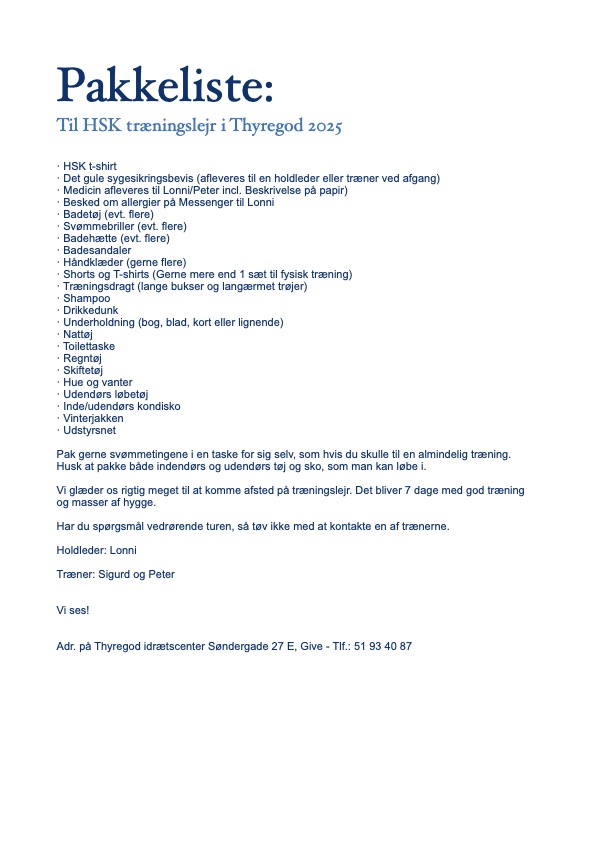Vi glæder os til en god træningslejr